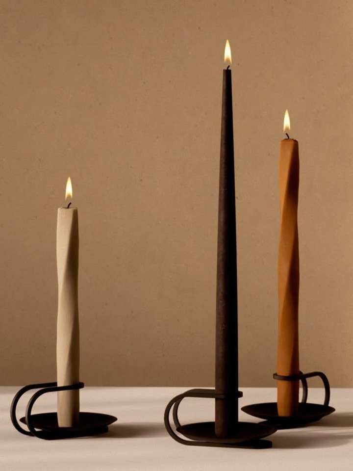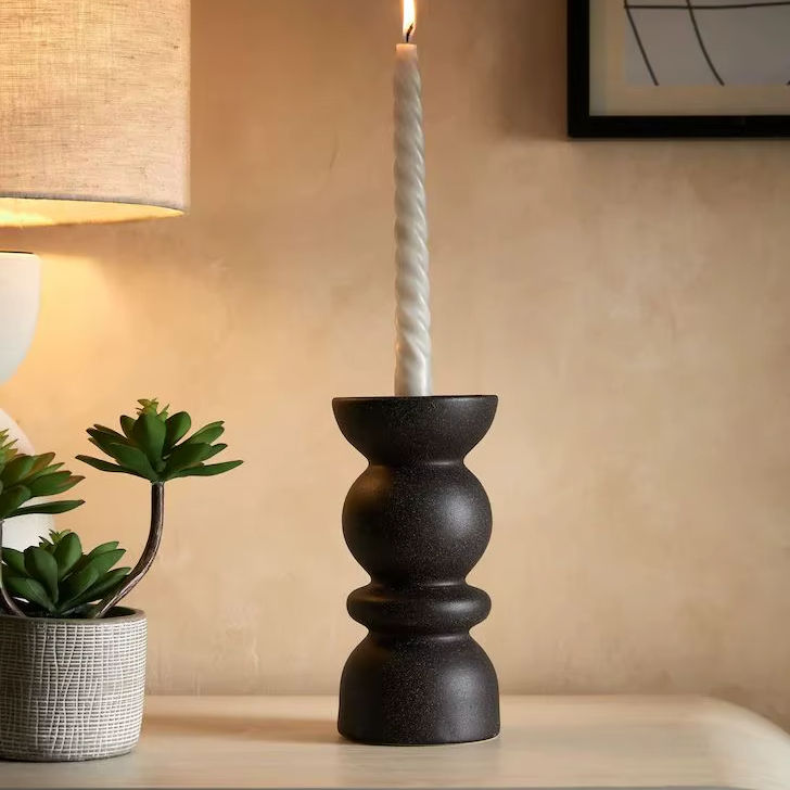 ที่วางเทียนทรงเสาแบบเรียว สีดำด้าน ผิวสัมผัสแบบมีเท็กซ์เจอร์ พร้อมดีไซน์เรขาคณิตที่โดดเด่น มีจำหน่ายในราคาขายส่ง