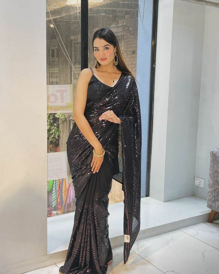 บอลลีวู้ดสไตล์บล็อกบัสเตอร์สีดำส่าหรีปาร์ตี้และฟังก์ชั่นพิเศษงานปักผ้าจอร์เจียออนไลน์ช้อปปิ้ง surat ทำจากผ้าไหม