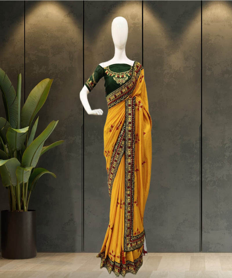 Bollywood Style New Attractive Diamond with Fashionable Embroidery Work Saree with Unstitched Blouse Lowest Price Apparelgarment
