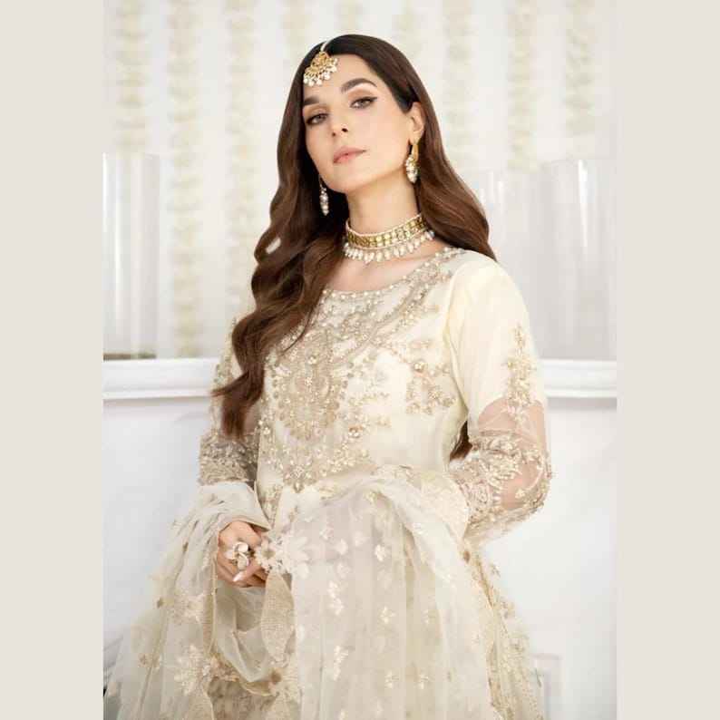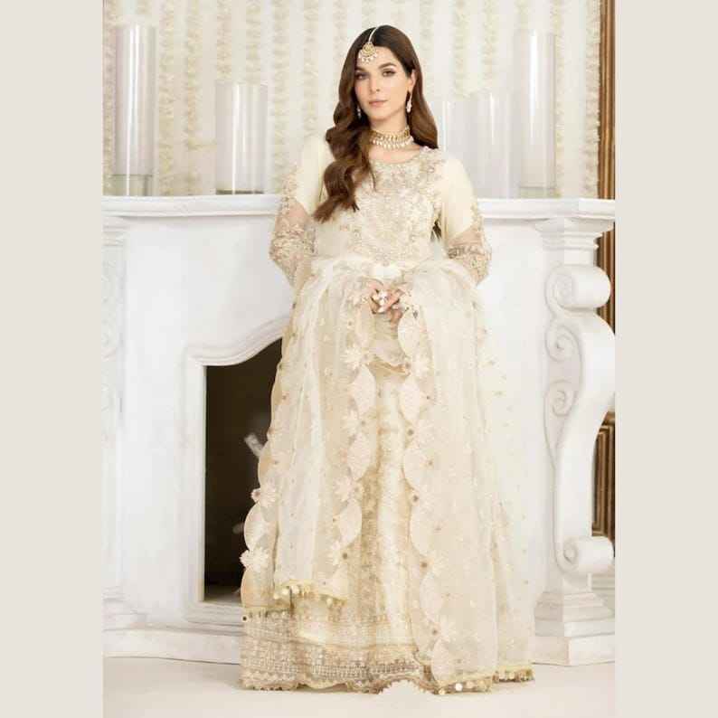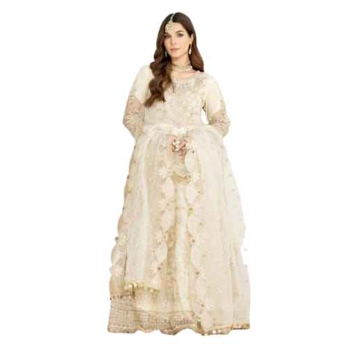 ชุดเจ้าสาวหลากสีขาวสไตล์บอลลีวูดอินเดียปากีสถานชุดยาวของผู้หญิง