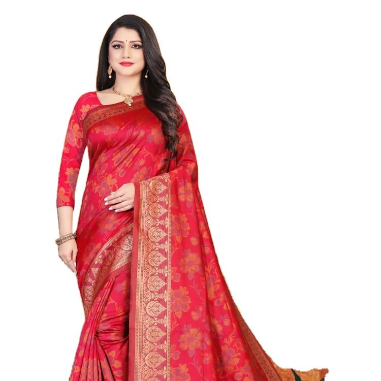 เสื้อส่าหรีดีไซน์เนอร์บอลลีวู้ดผ้าไหมนิ่มพิมพ์ลายดิจิตอลสีแสดเข้มพร้อมเสื้อเสื้อแต่งผ้าอินเดีย