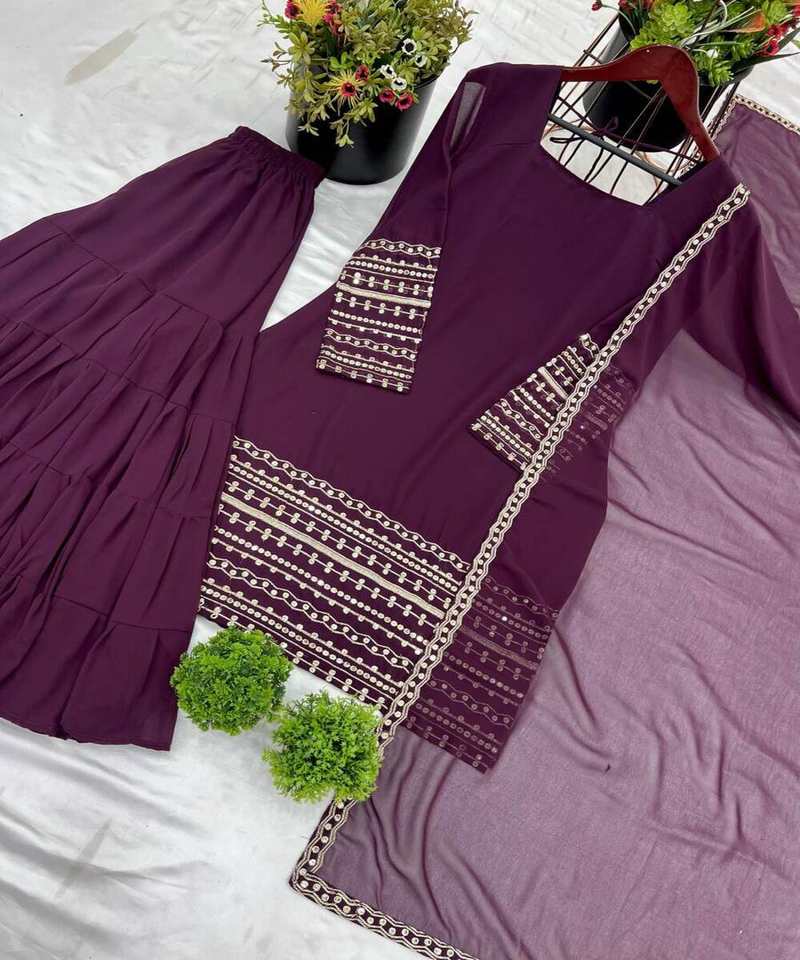 ชุดเดรสผ้าจอร์เจตต์เนื้อผ้าฝ้ายสไตล์บอลลีวูด แต่งเลื่อมแบบทันสมัยสำหรับงานพิธีการ รุ่นชารารา