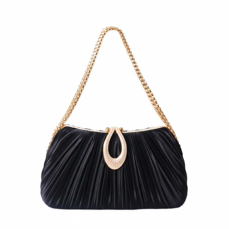 กระเป๋าคลัทช์ผู้หญิงสุดหรู ประดับคริสตัลและรายละเอียดโลหะ ดีไซน์สวยงาม เหมาะสำหรับงานหรูหราและงานเลี้ยง