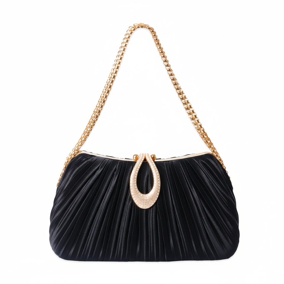 กระเป๋าคลัทช์งานหมั้นแบบกำมะหยี่ประดับเพชร พร้อมสายสะพายไหล่และสายโซ่สไตล์วินเทจ
