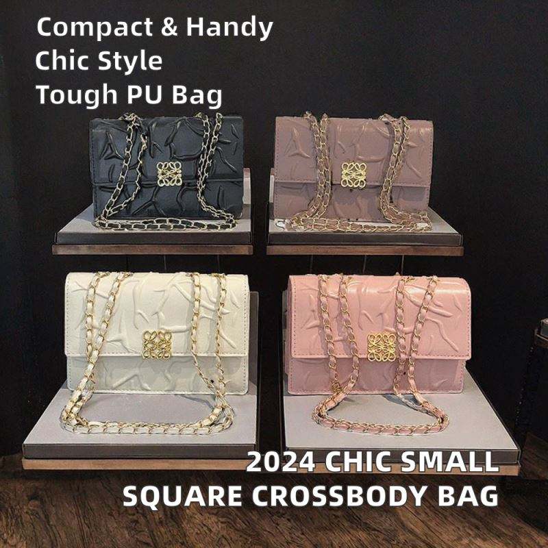 กระเป๋าสะพายข้างขนาดเล็กทำจากหนังเทียมพร้อมจี้มุกสำหรับผู้หญิง สีพื้นเรียบง่ายทันสมัย