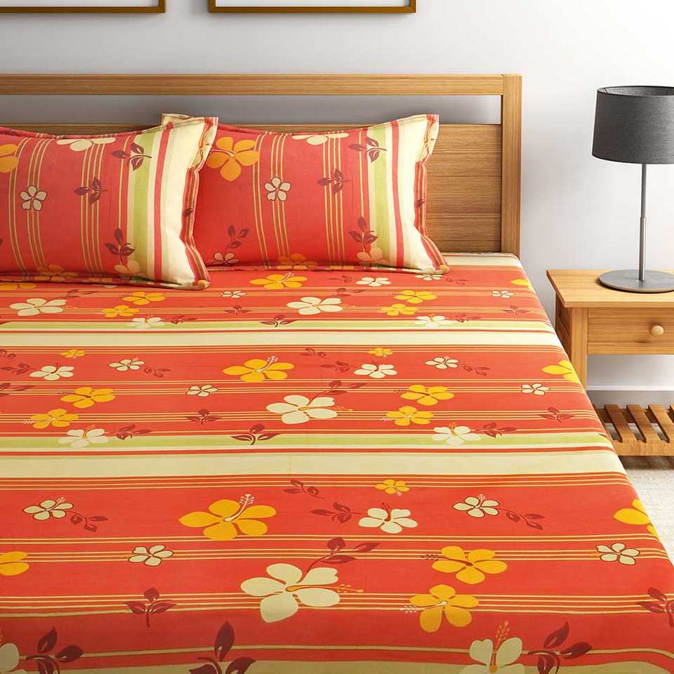 บอมเบย์ย้อมผ้าลินินสีส้มน้ำค้างหยดผ้าปูที่นอนผ้าลินินที่มีสองหมอนครอบคลุมผ้าสิ่งทอสำหรับผ้าปูที่นอน