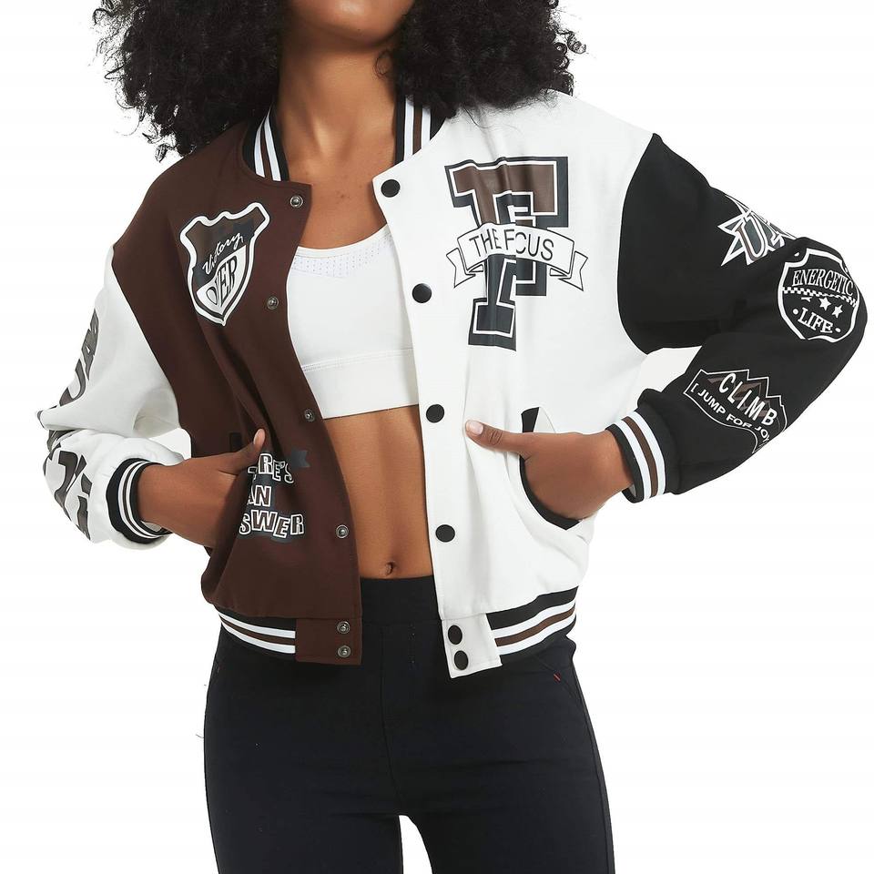Bomber Crop Varsity Jacket Baseball for Women Streetwear Luxury Design Women's Cropped Varsity Jacket Wool Body Leather Sleeves