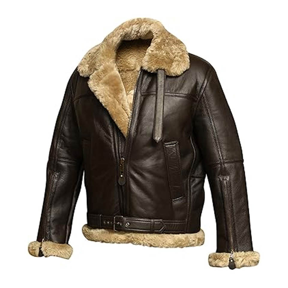 เสื้อแจ็คเก็ตนักบินหนังแกะแท้สไตล์วินเทจสำหรับผู้ชาย ยี่ห้อ Bomber Ginger Aviator รุ่น British Sheepskin Shearling เหมาะสำหรับฤดูหนาว ให้ความอบอุ่น ทำจากหนังแกะแท้