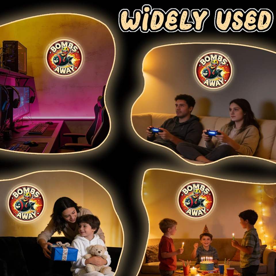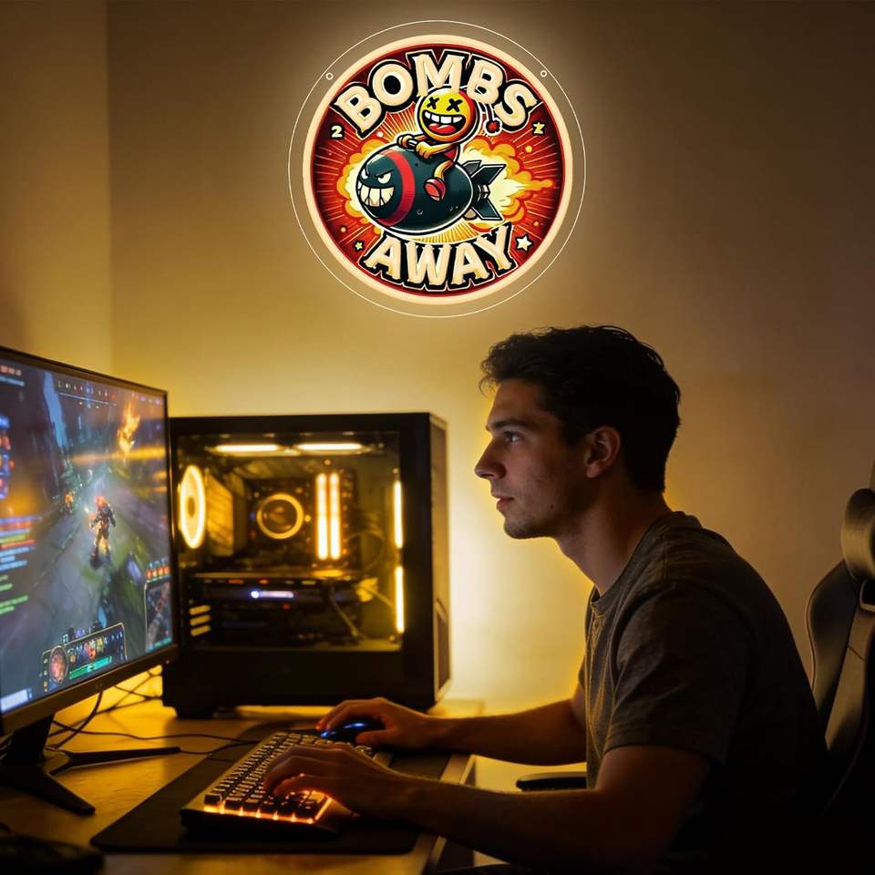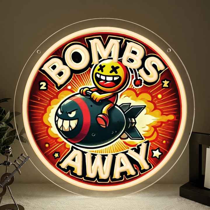 ป้ายไฟนีออน Bomb Away สำหรับตกแต่งผนัง, ป้ายเท่ๆ สำหรับห้องแมนเคฟ โรงรถ ไฟนีออนแบบกำหนดเอง ไฟนีออน LED