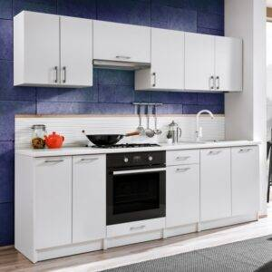 Bona ตู้ครัวเคลือบสีขาว240ซม. สไตล์โบราณกรณีไม้เนื้อแข็ง carcase เมลามีนหินแกรนิตสำหรับเฟอร์นิเจอร์อพาร์ตเมนต์ที่ทันสมัย