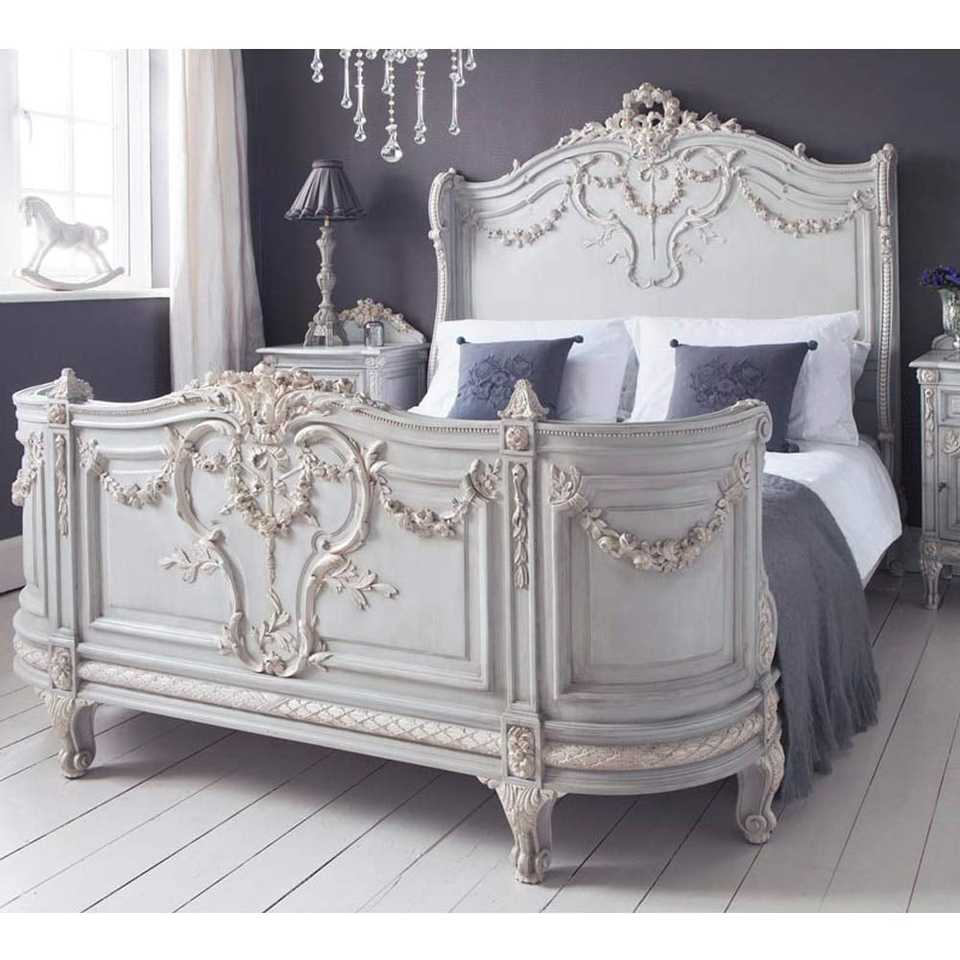 เตียงไม้เนื้อแข็งโบนาปาร์ต สีขาวโบราณ งานแฮนด์เมด สไตล์ฝรั่งเศส