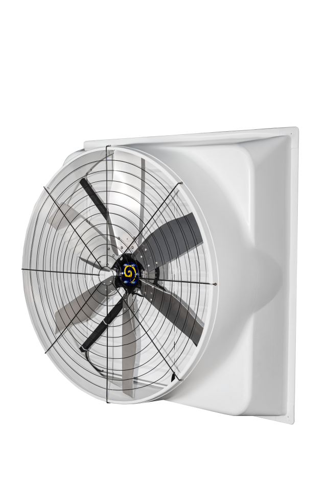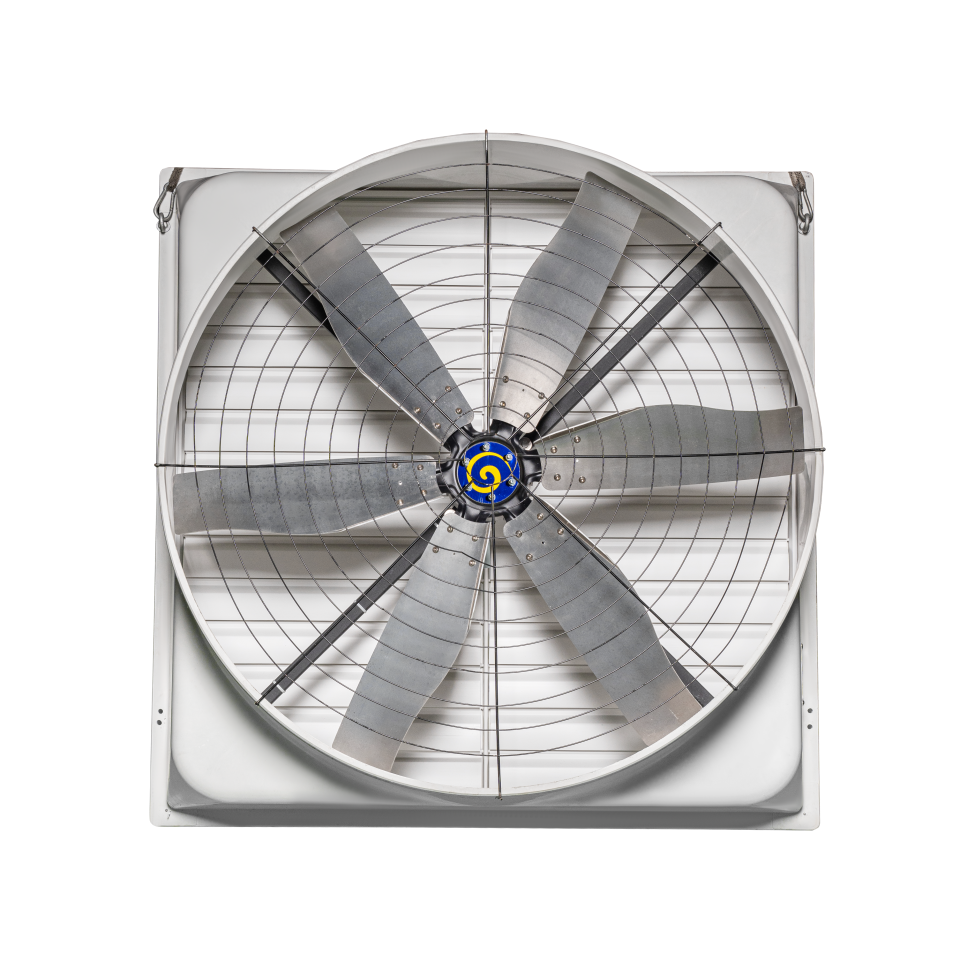 พัดลมดูดอากาศแบบแกนหมุนไฟฟ้า Bonawind ขนาด 55 นิ้ว ป้องกันน้ำและฝุ่นละอองระดับ IP55 ความเร็วลม 38800CFM ผลิตจากอะลูมิเนียม สำหรับโรงเรือนสัตว์ปีก