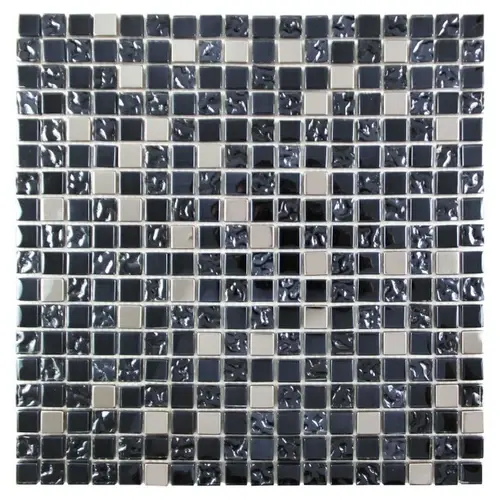 Bondi กระเบื้องโมเสคหินอ่อนลายกริดสำหรับห้องครัวห้องน้ำสีดำสีเงินมันวาวทำจากไฟร์บริคภายในทรงสี่เหลี่ยม