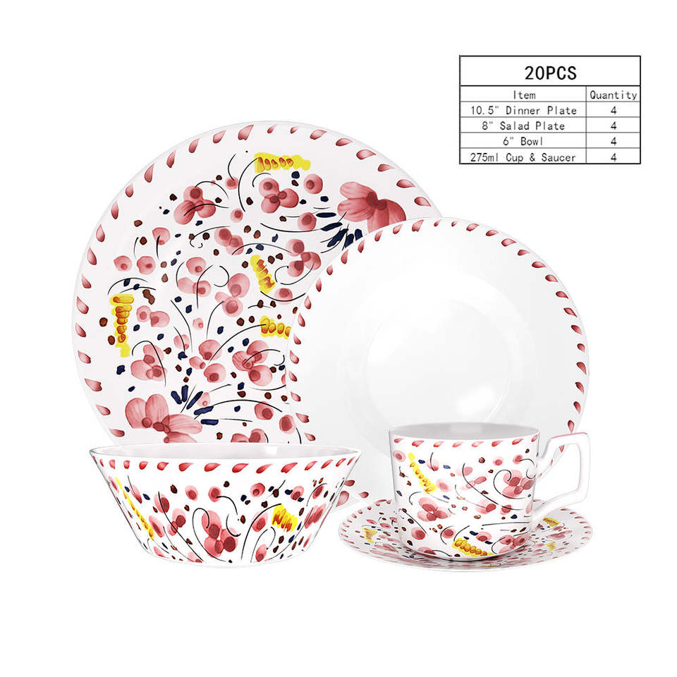 ชุดจานชามเซรามิกลายดอกไม้สีแดงลายดอกไม้สำหรับงานเลี้ยงงานแต่งงาน