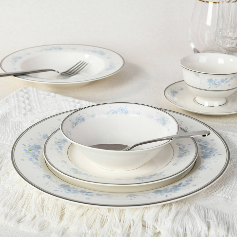 ชุดจานชามเซรามิกลายดอกไม้ขอบสีเงินชุดเครื่องใช้บนโต๊ะอาหารลายดอกไม้จากประเทศจีน