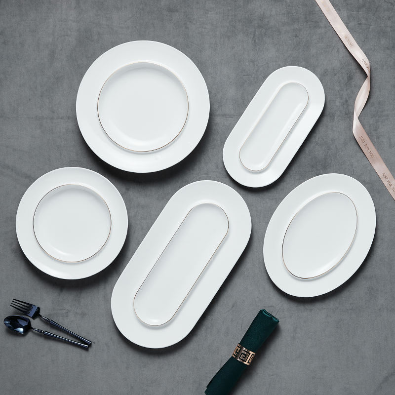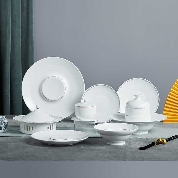 จานเซรามิกลายกระดูกจีนชุดจานปลาชามสลัดเซรามิกชุดจานชามพอร์ซเลนจานชาร์จสำหรับอาหาร
