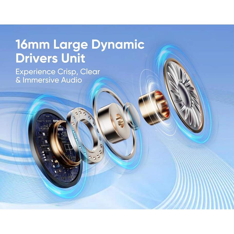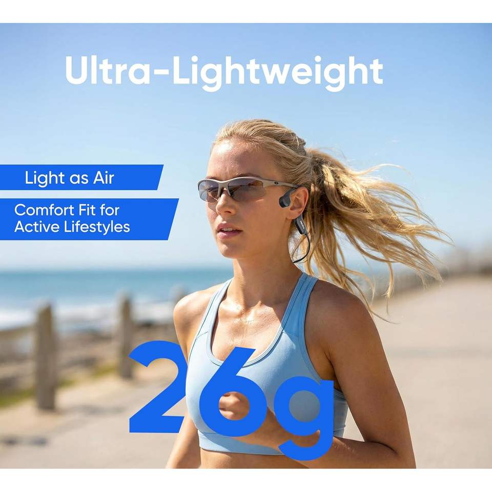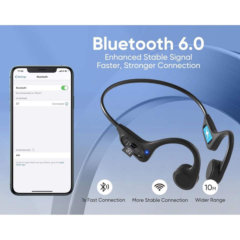 หูฟังแบบนำเสียงผ่านกระดูกแบบเปิดหูสำหรับ 6.0 IPX6 กันเหงื่อ น้ำหนักเบา สำหรับเล่นกีฬา ไร้สาย แบตเตอรี่ใช้งานได้นาน 33 ชั่วโมง ปุ่มควบคุม