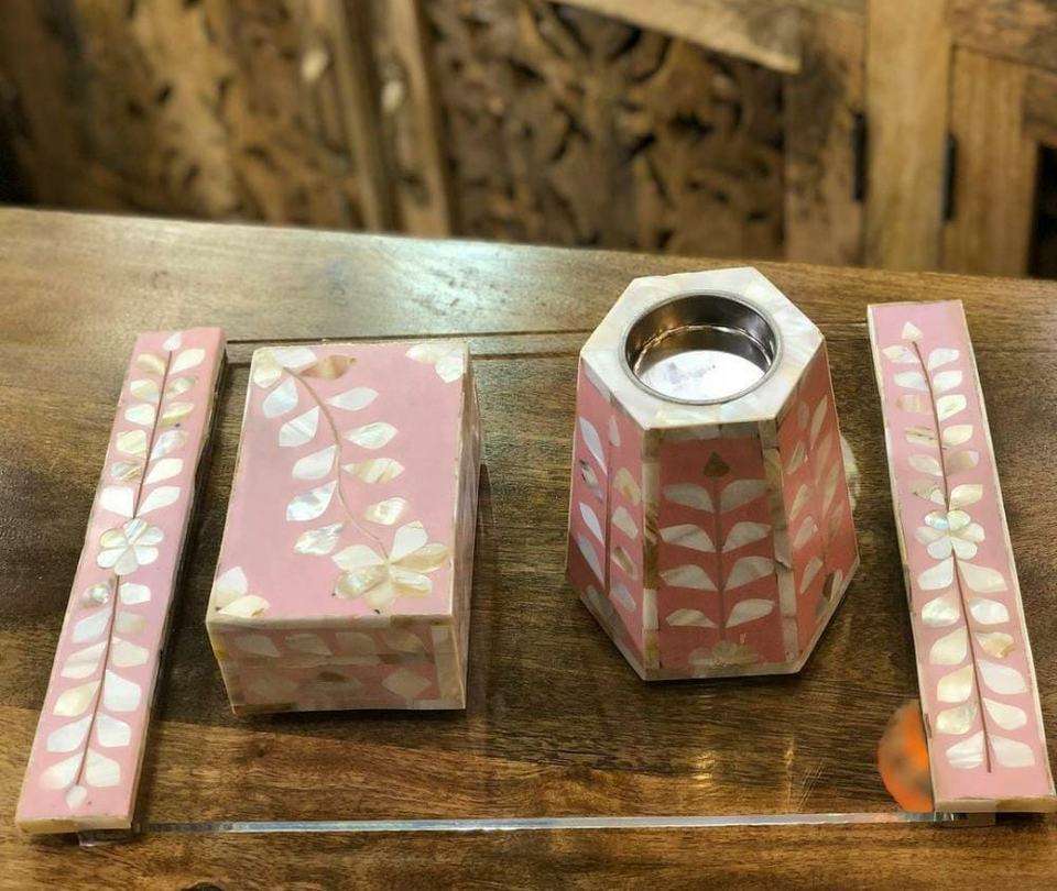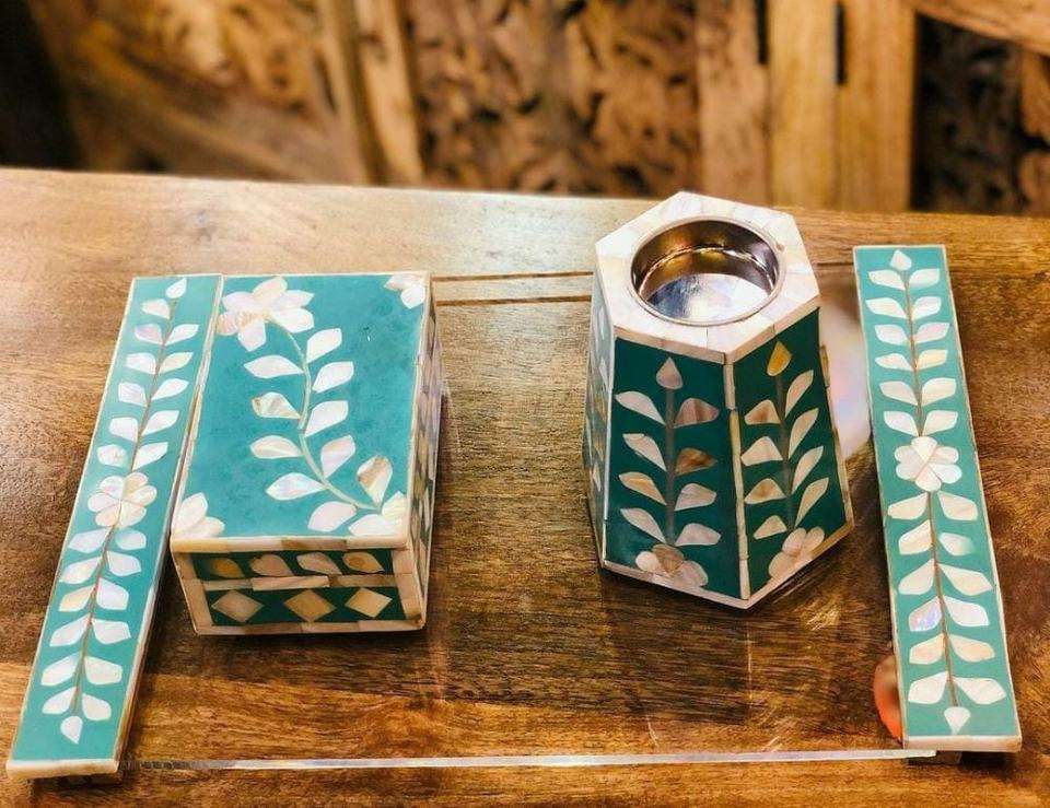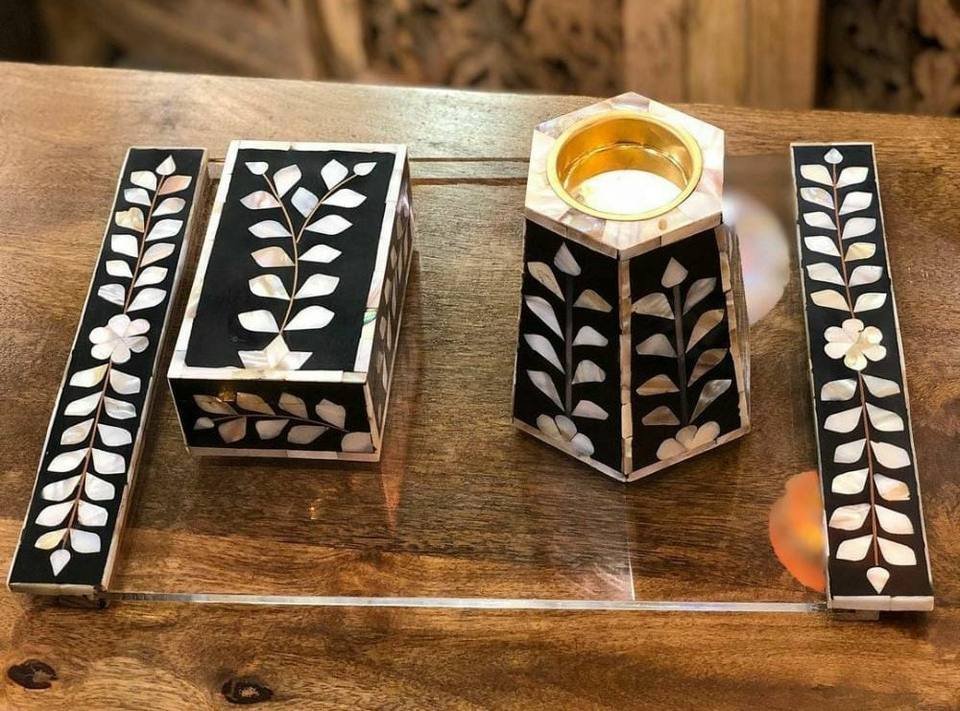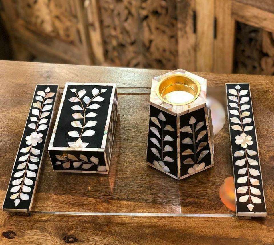 เครื่องเผาเครื่องหอมแบบดั้งเดิมของ Pvt จาก kefaf ชุดเครื่องหอมสไตล์อาหรับฝังกระดูกลายดอกไม้
