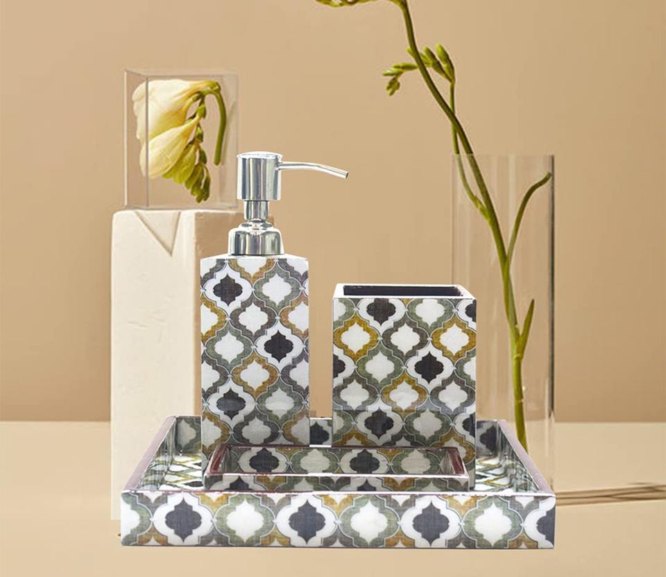 ชุดอุปกรณ์เสริมห้องน้ำห้องนอนแบบฝังกระดูกทำมือของตกแต่งบ้านที่หรูหราโต๊ะเครื่องแป้งที่จำเป็นโซลูชันการจัดเก็บที่ทันสมัย