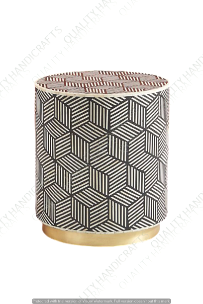 โต๊ะข้างเตียงลายกระดูกฝังแบบเพชร ดีไซน์ลายทาง สีดำ โต๊ะข้างเตียงลายกระดูกฝังจากอินเดีย สำหรับเฟอร์นิเจอร์ห้องนั่งเล่น
