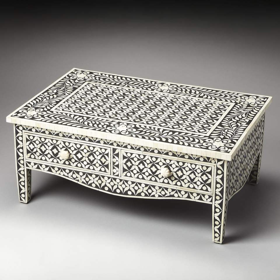 Bone Inlay Console with Floral Hand-Carved Mosaic