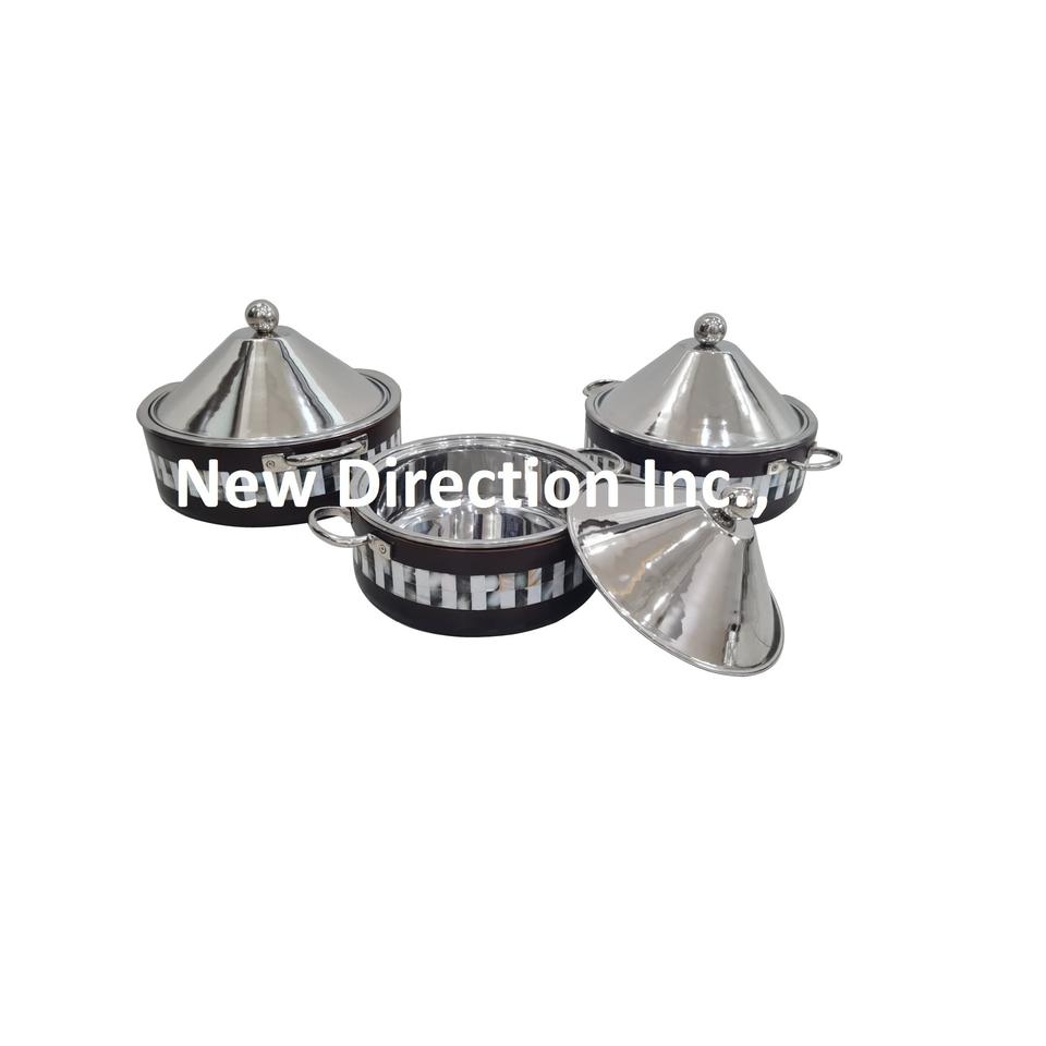 หม้ออบผนังสองชั้นทำจากไม้ทรงกลมดีไซน์แบบฝังกระดูกหม้อไฟตกแต่งมันวาวสำหรับเสิร์ฟร้อน