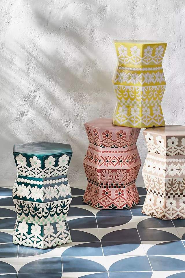 โต๊ะข้างเตียงลายดอกไม้งานฝีมือแบบดั้งเดิมที่ฝังกระดูกโต๊ะเฟอร์นิเจอร์ห้องนั่งเล่นจากอินเดีย