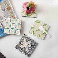 Aaliyan impex ที่รองแก้วฝังมุกงานฝีมือที่ไม่ซ้ำกันกับงานฝีมือที่หรูหราสำหรับเครื่องดื่มร้อนในราคาไม่แพง