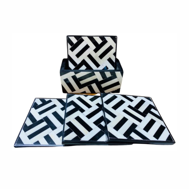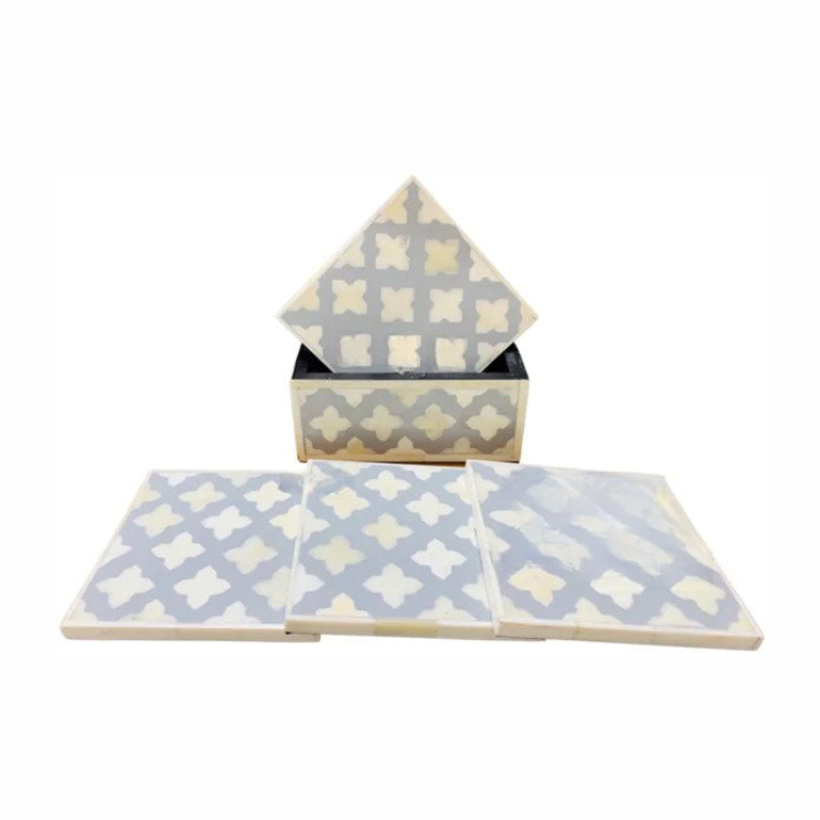 ถาดรองแก้วสีเทาฝังกระดูกรูปทรงสี่เหลี่ยมดีไซน์ลายดาวพร้อมกล่องคุณภาพสูง
