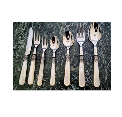 ชุดช้อนส้อมสแตนเลสสตีล ด้ามจับฝังลายกระดูก ขัดเงาสีเงิน สำหรับใช้ในบ้านและงานแต่งงาน ช้อนสแตนเลสขัดเงาแบบกระจก