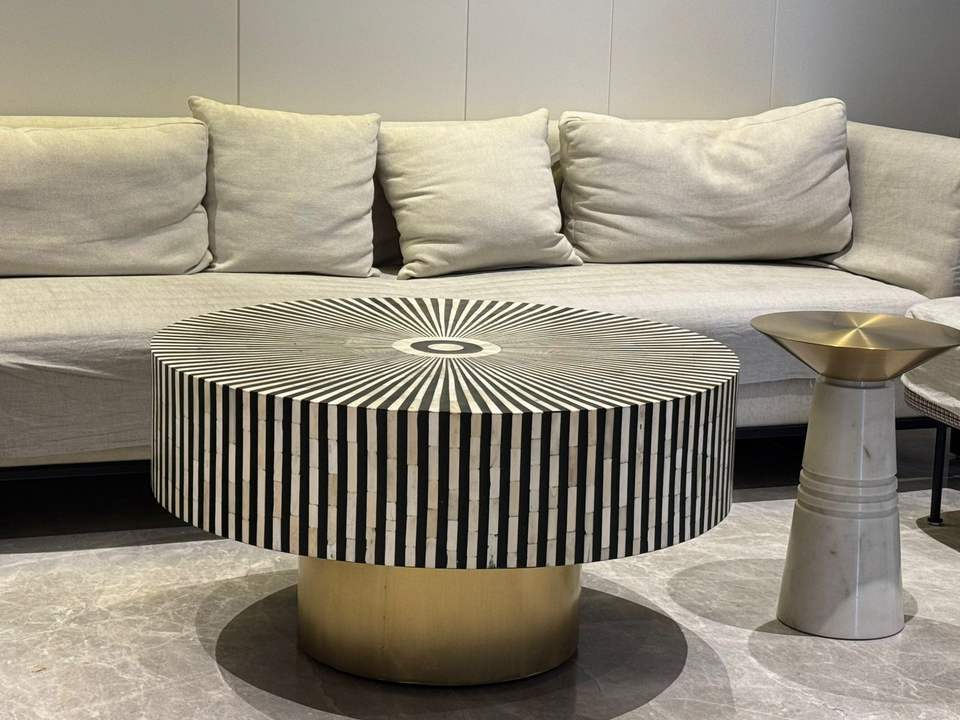 คอนโซลฝังกระดูกแบบดั้งเดิมหรูหราโต๊ะกาแฟการออกแบบที่ซับซ้อนสำหรับห้องนั่งเล่นห้องนอนทางเข้าสำหรับการประชุมเชิงปฏิบัติการบ้านไร่