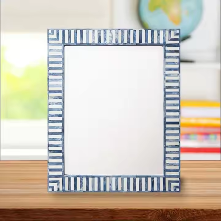 กรอบกระจกกระดูกฝังลายทันสมัยสำหรับตกแต่งบ้านในห้องน้ำกรอบกระจกฝังกระดูกทำด้วยมือด้วยงานฝีมือรูปพระจันทร์เสี้ยว