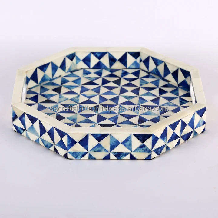 ถาดเสิร์ฟทรงกลมแบบฝังกระดูกพร้อมพื้นผิวเรียบเหมาะสำหรับโฮสต์แสดงเทียนหรืออุปกรณ์เสริมสำหรับบาร์จากอินเดีย