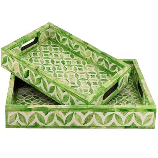 Handmade Deluxe Dinnerware Serving Tray Bone Inlay Polished Rectangle High Standard Quality Food Contact Safe Home Restaurant
