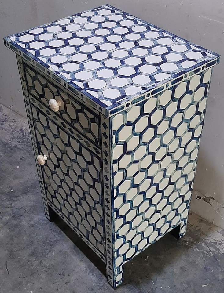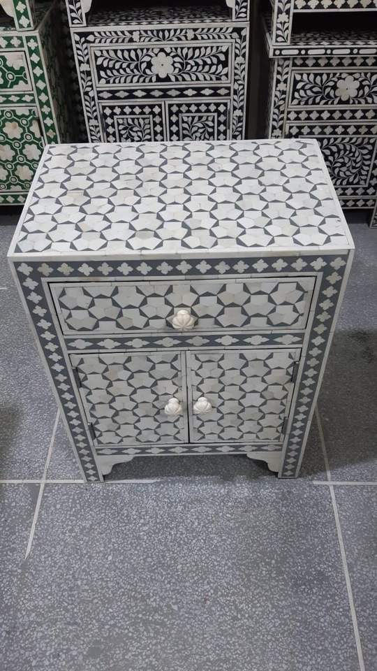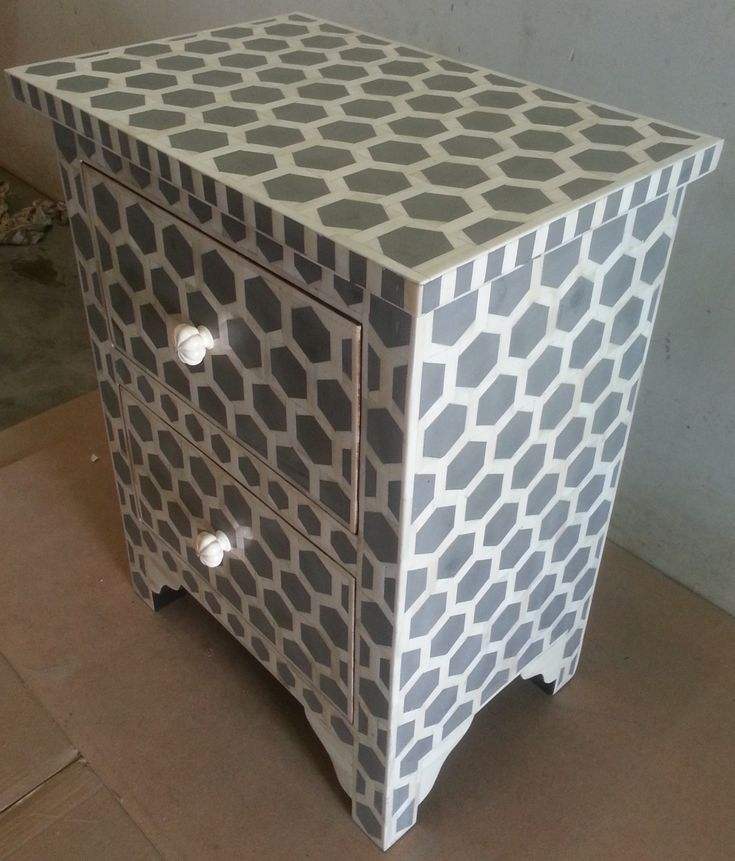 โบนอินเลย์หัตถกรรมร่วมสมัยประเพณีดอกไม้และข้างเตียงตู้วางกระดูก Inlay ห้องนั่งเล่นจากอินเดีย