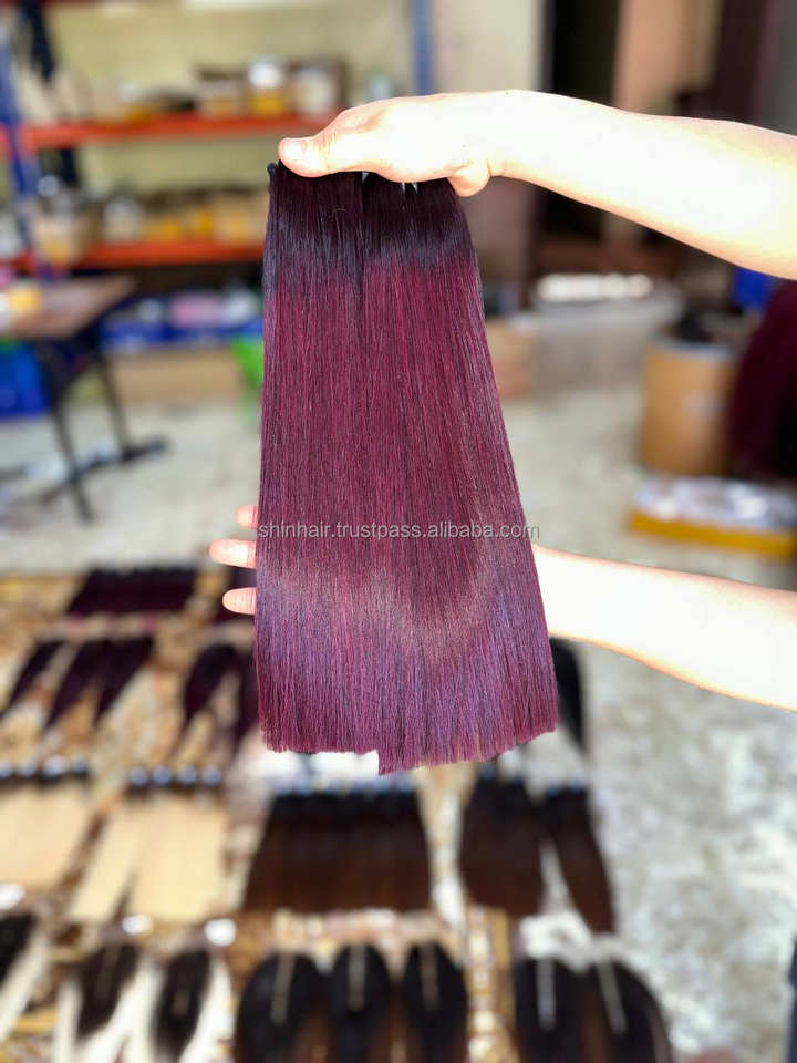 ผมมนุษย์เวียดนามมัดทรงตรงสีเบอร์กันดีเข้ม8 10 12นิ้ว