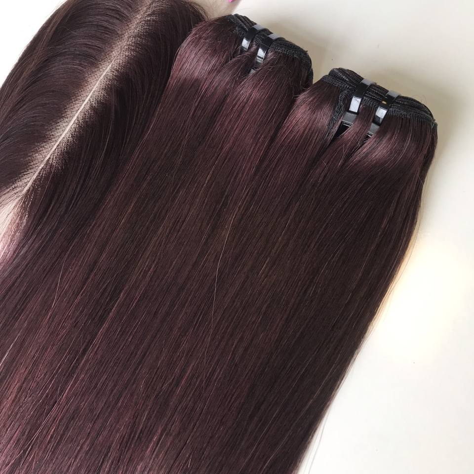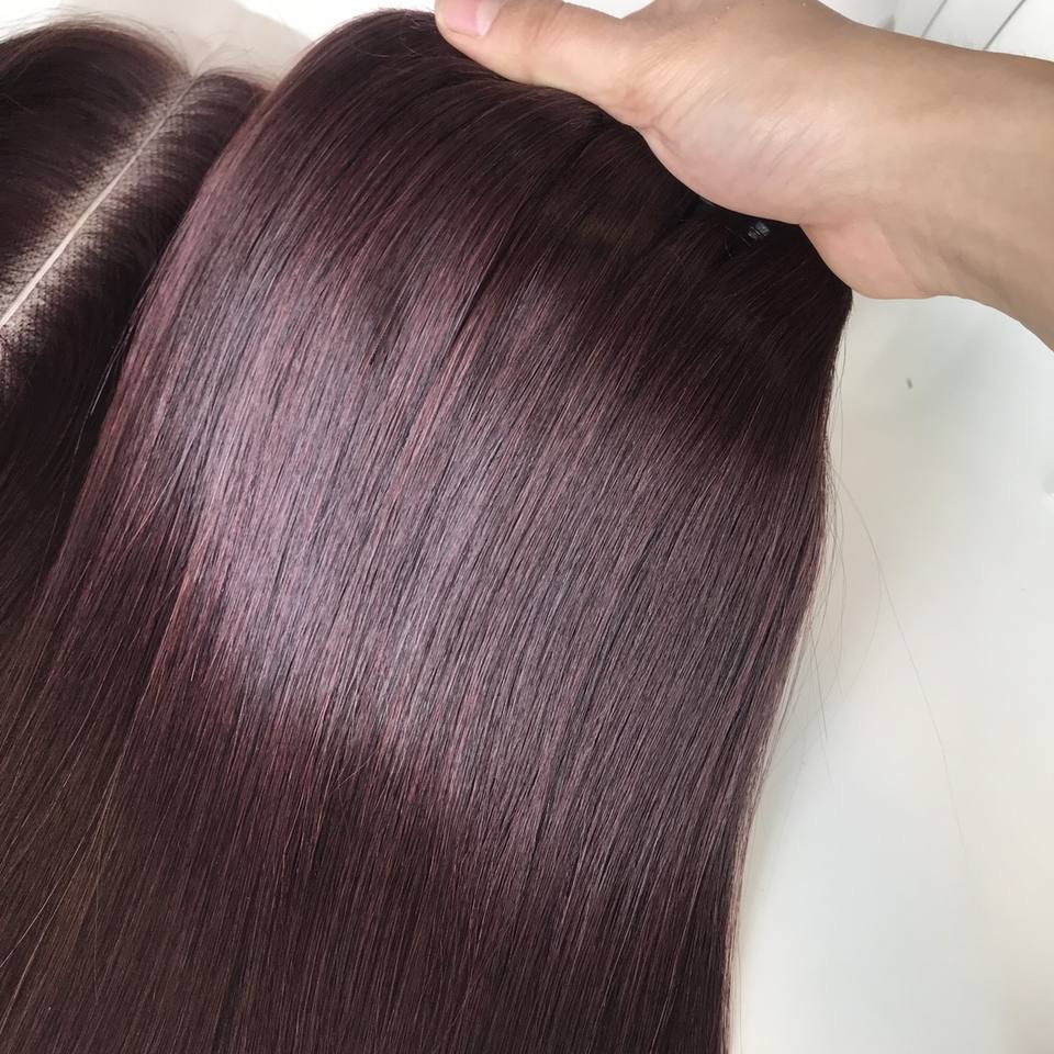 ผมต่อสีธรรมชาติเนื้อตรงเนื้อกระดูกมนุษย์สีเข้มเบอร์กันดีสีธรรมชาติจากเวียดนาม