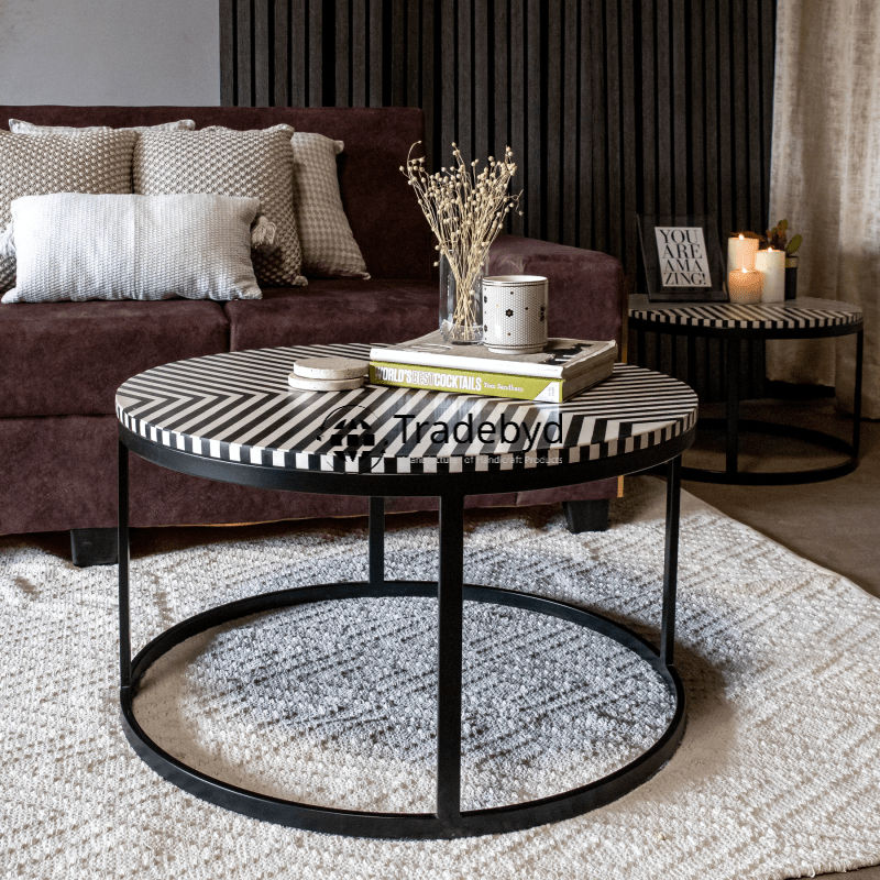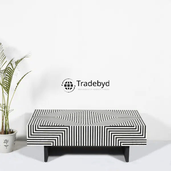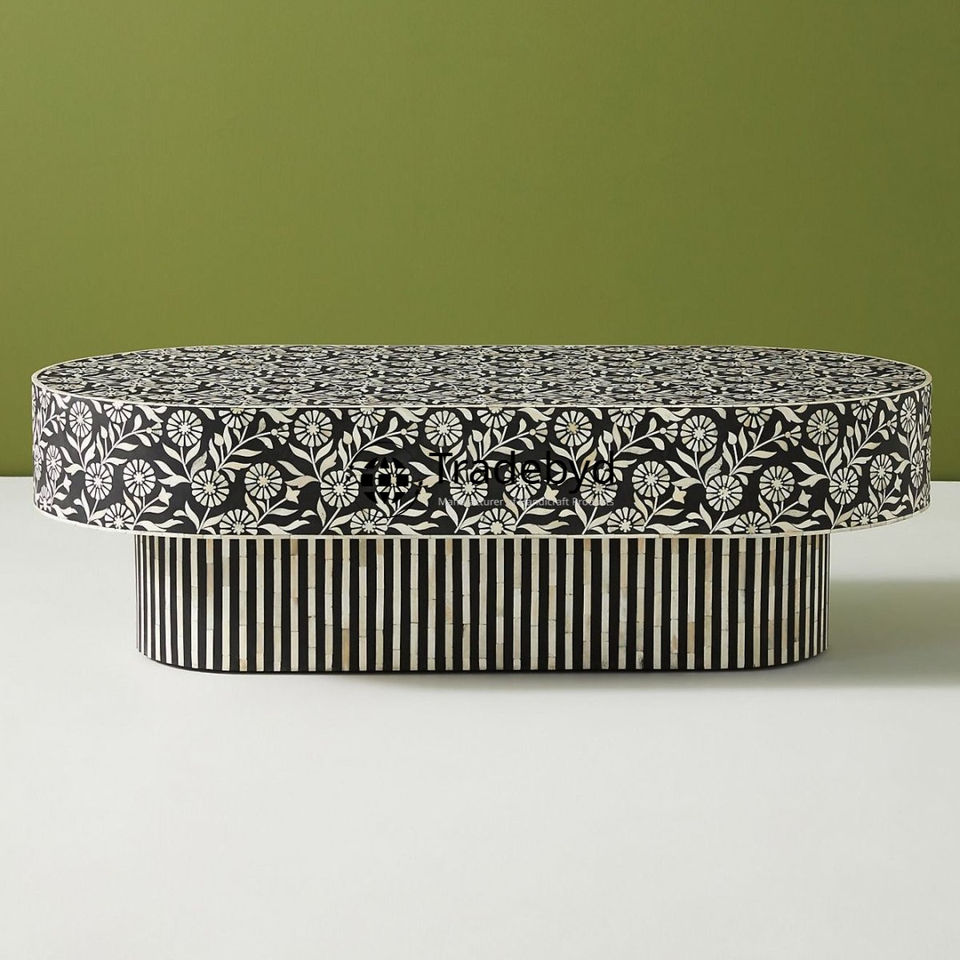 Handcrafted Bone Inlay Coffee Table with Detailed Design Elegant Console Decor Accent by Tradebyd