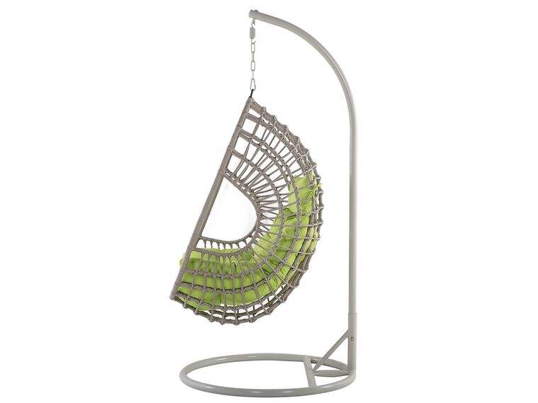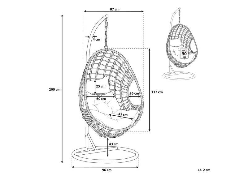 คำอธิบาย:เก้าอี้หวายแขวนพร้อมขาตั้ง สีเบจเทา