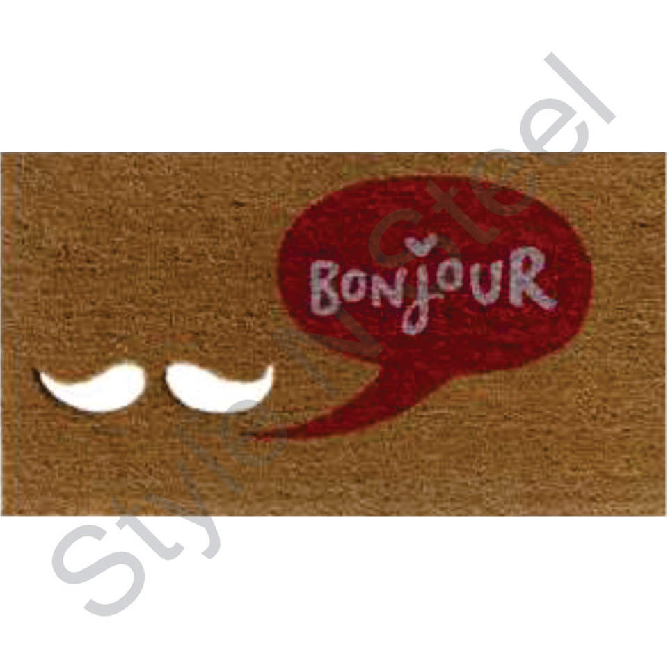 Bonjour Red Color Message With White Mustache on Brown Color Doormat Combination Carpet at Wholesale Price
