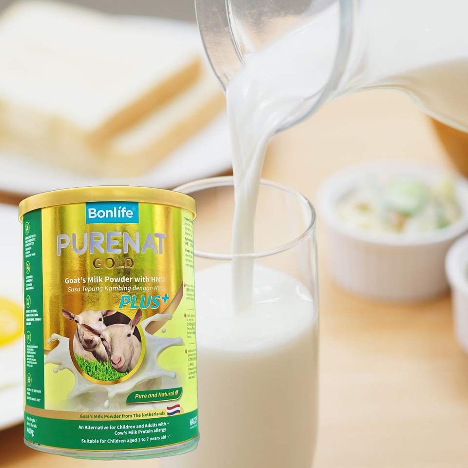 นมผงแพะบอนไลฟ์ เพียวเนท โกลด์ พลัส สำหรับเด็ก ผสมดีเอชเอ เอชเอ็มโอ พรีไบโอติก และสารอาหารบำรุงสมอง (400 กระป๋อง)