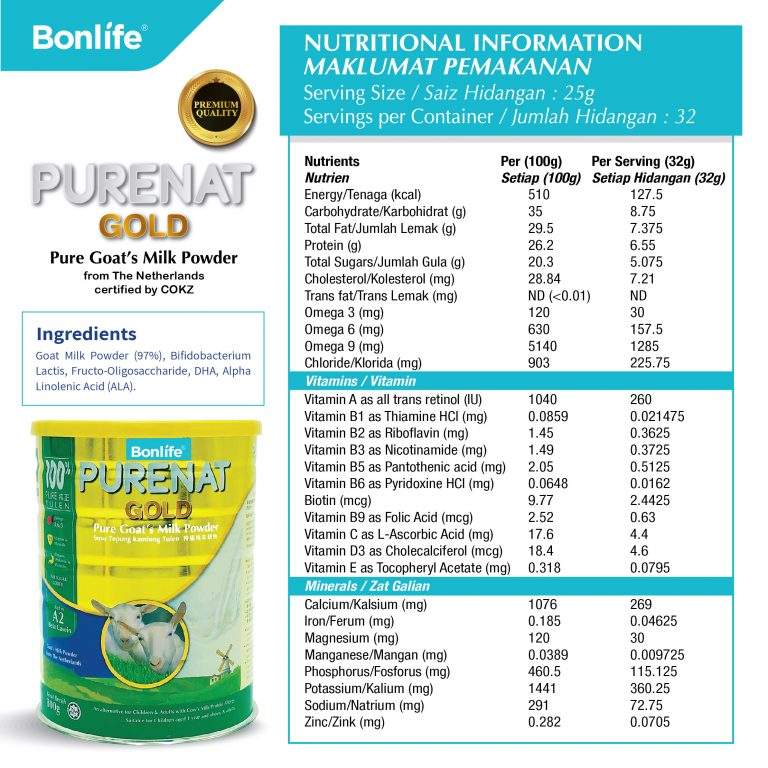 Goat Milk Powder, Bifidobacterium lactis, FurctoOligosaccahride, Algae DHA, Alpha Linolenic Acid (ALA)ส่วนผสมหลัก