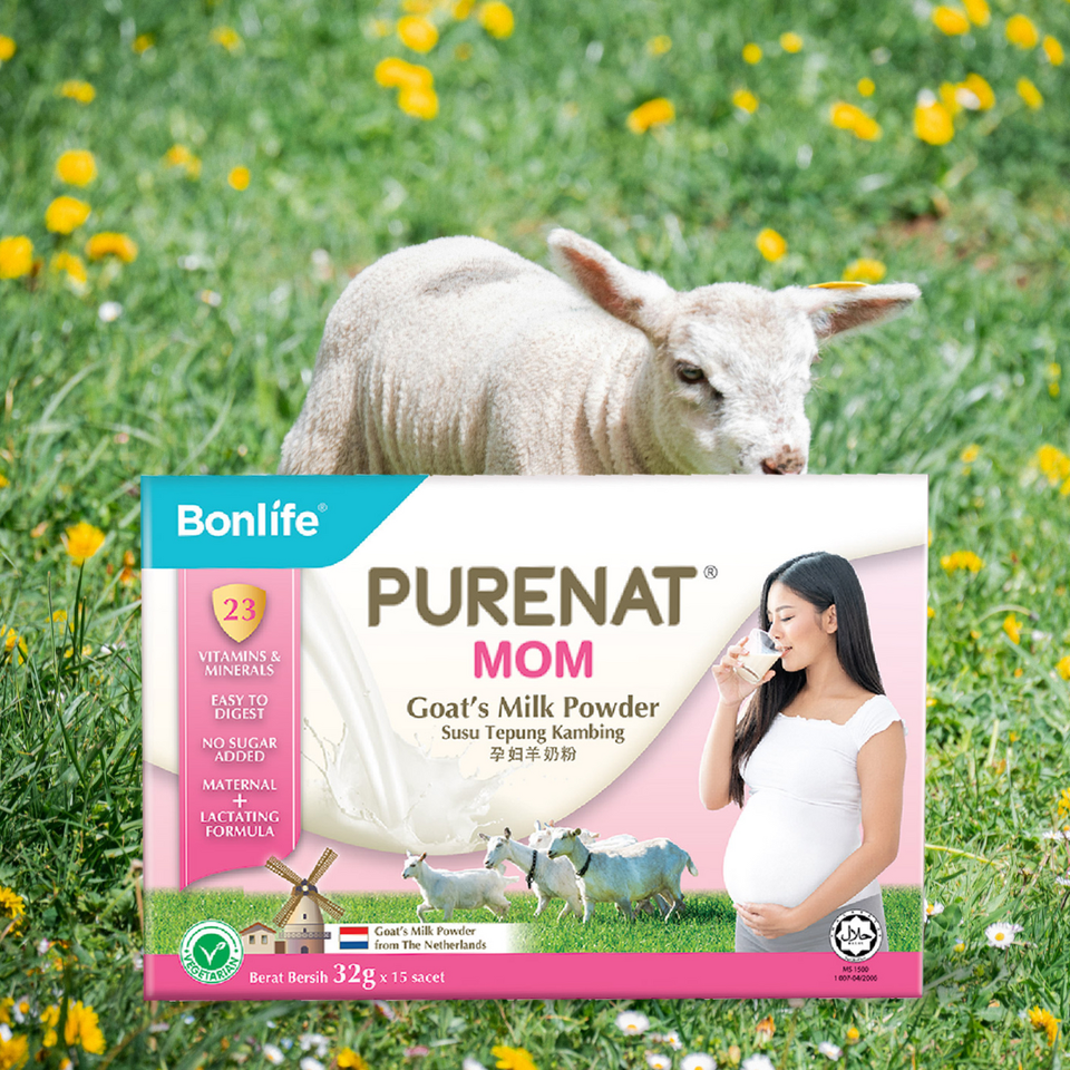 นมแพะผงบอนไลฟ์ เพียวเนท สำหรับคุณแม่ ผสมพรีไบโอติก ลูทีน และดีเอชเอ บำรุงสมองและสายตา (32 กรัม x 15 ซอง)