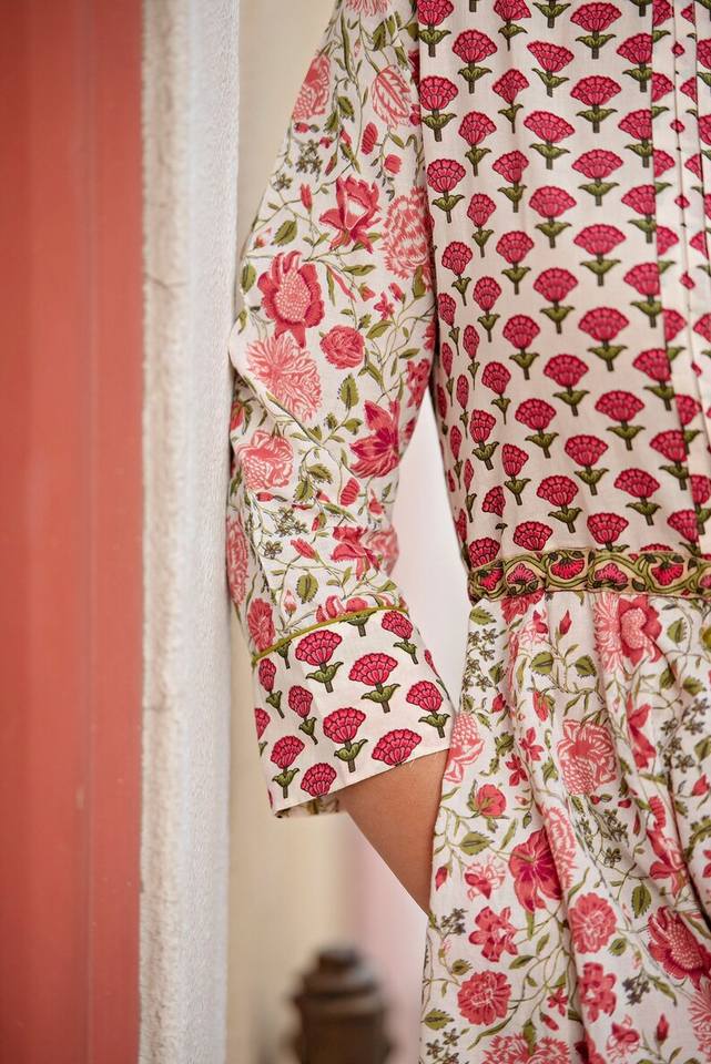 ชุดเดรสผ้าฝ้ายพิมพ์ลายบล็อกด้วยมือสไตล์โบฮีเมียนของบอนนี่ แฟชั่นที่เป็นมิตรต่อสังคมและสวมใส่สบายๆ ในโอกาสต่างๆ