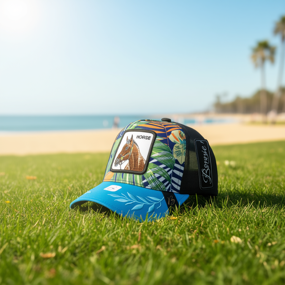 หมวกบอนนี่ทรัคเกอร์ ผ้าตาข่าย ปักลายม้า ยูนิเซ็กส์ สวมใส่สบายๆ สำหรับฤดูใบไม้ผลิและฤดูร้อน หมวก 6 แผง