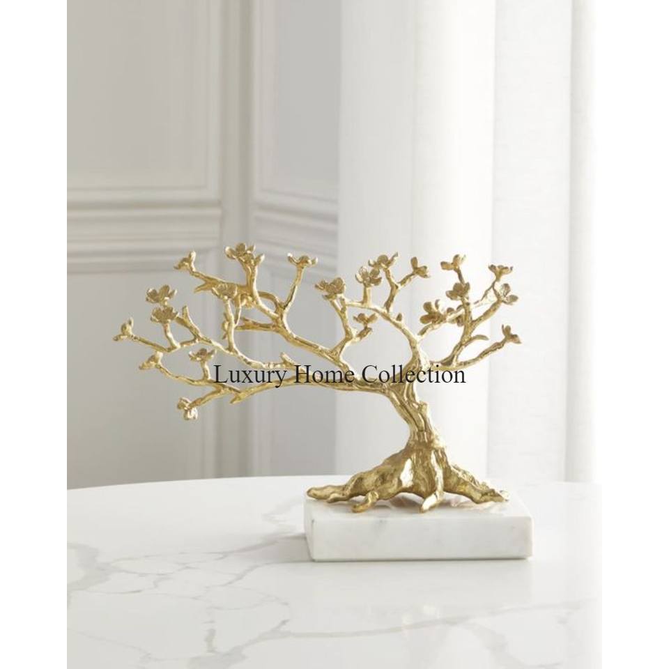 นักออกแบบต้นบอนไซศิลปะสร้างสรรค์สมัยใหม่ชุบทองพร้อมฐานหินอ่อนสีขาวรูปปั้นและวัตถุคุณภาพดีกว่าจากอินเดีย
