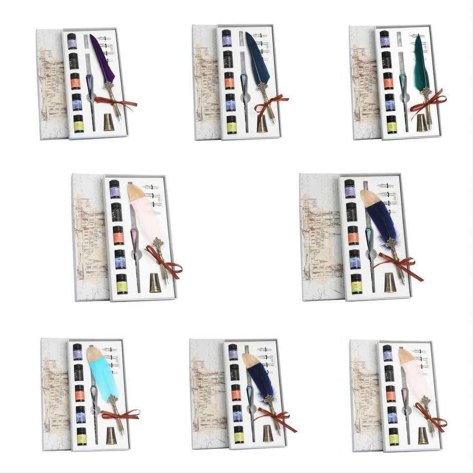 Bonvan Starry Sky Feather Pen with 0.7mm Writing Width Metal Logo Personalized Promotional Pen Multi-Colored Ink Novelty Design