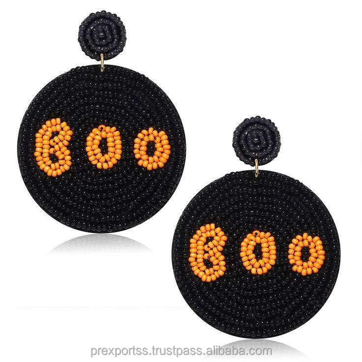 ต่างหูห่วงไม้ชุบเงินสไตล์ชาติพันธุ์สำหรับงานปาร์ตี้ฮาโลวีน ประดับลูกปัดสีดำส้มน่ารัก เหมาะสำหรับทุกเพศทุกวัย ใช้เป็นเครื่องประดับตกแต่งชุดแฟนซี