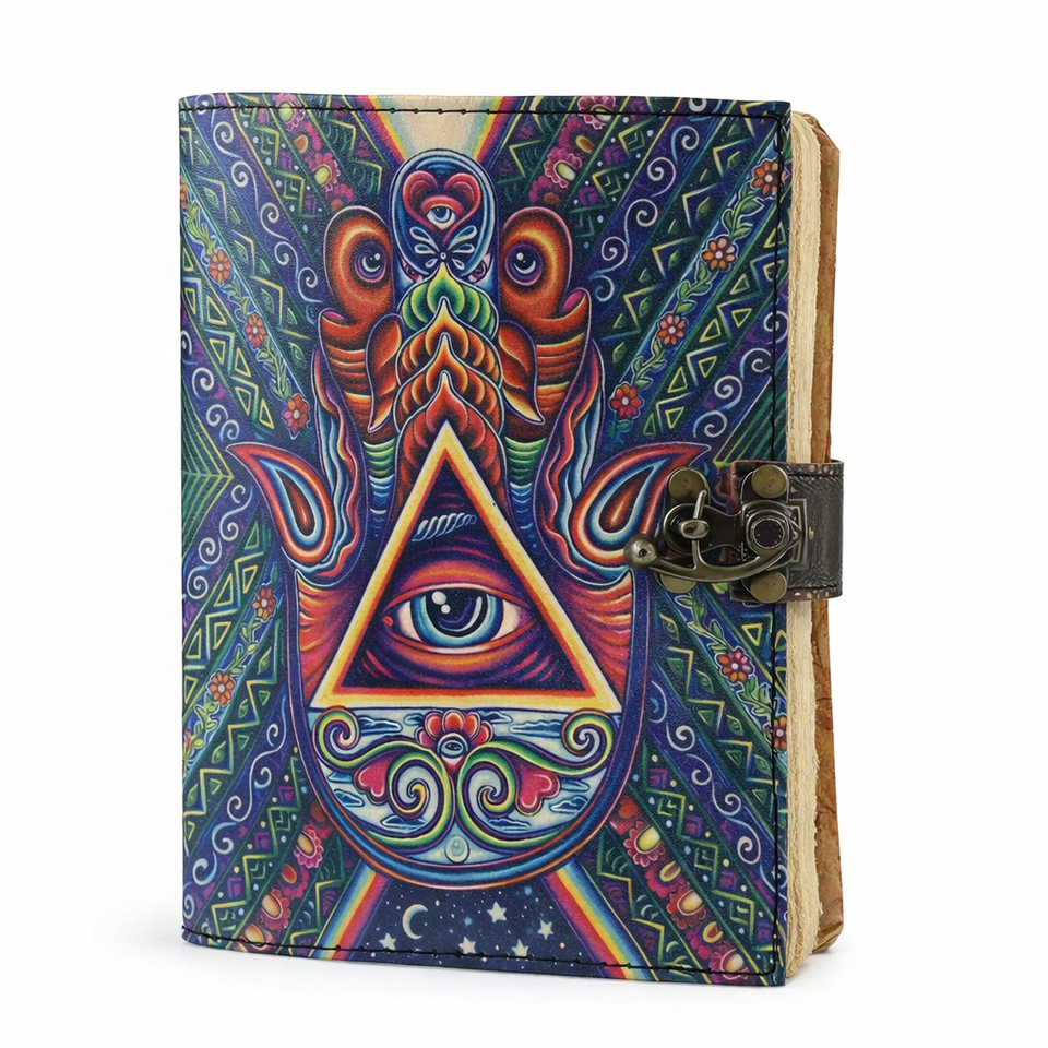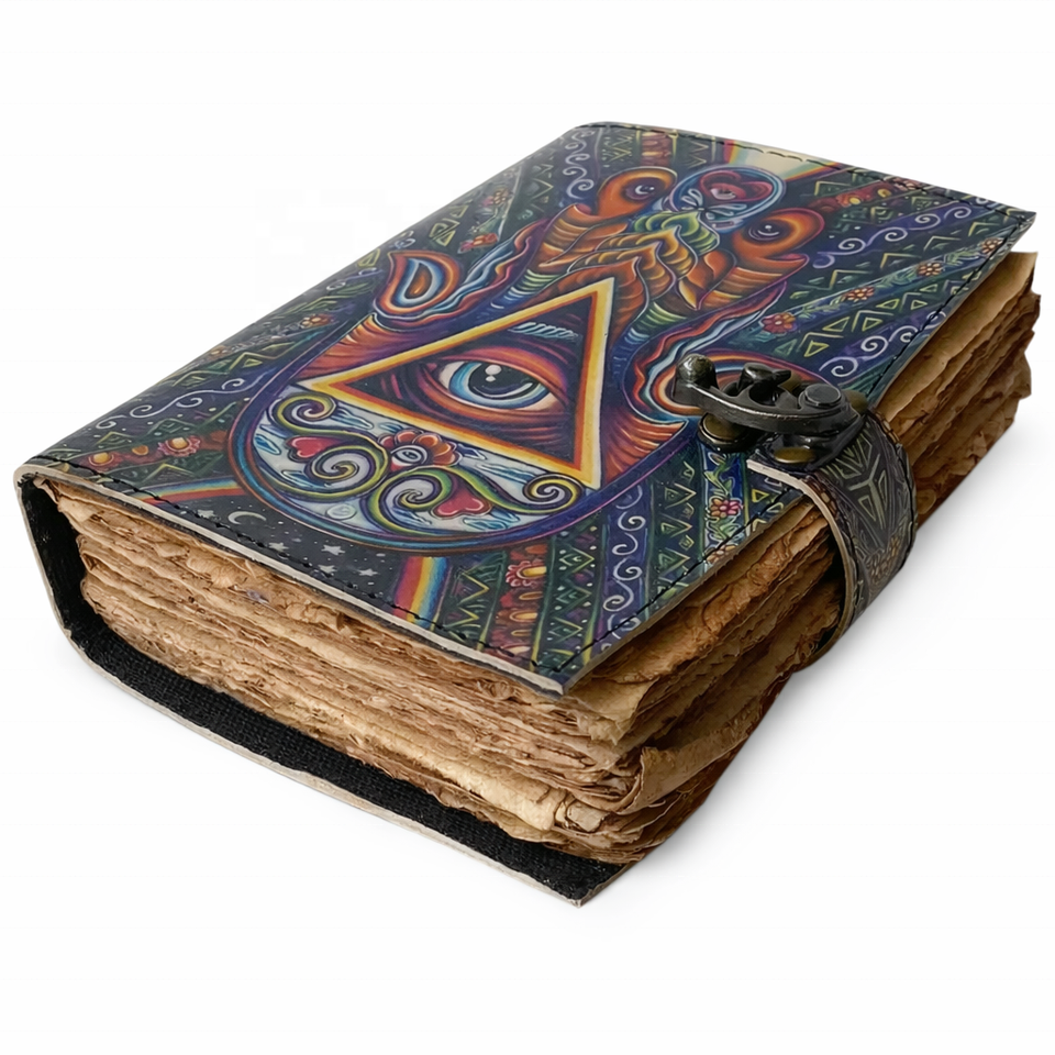 สมุดบันทึกปกหนังแข็งแบบโบราณ กระดาษขอบหยัก สำหรับจดบันทึกคาถา ไสยศาสตร์ ดวงตาที่สาม สมุดบันทึกแม่มด สมุดจดสูตรคาถา