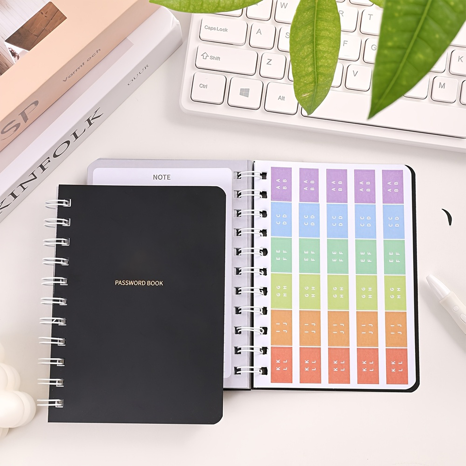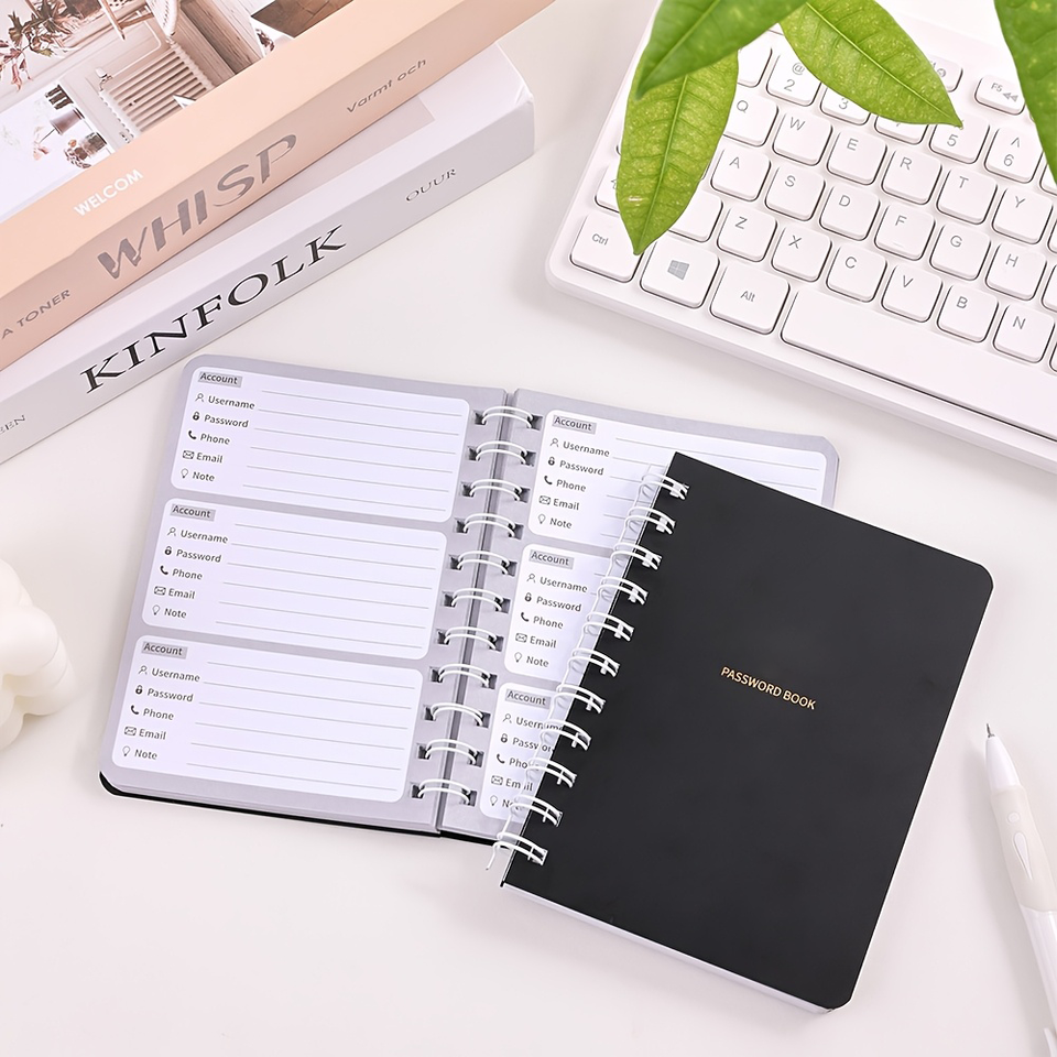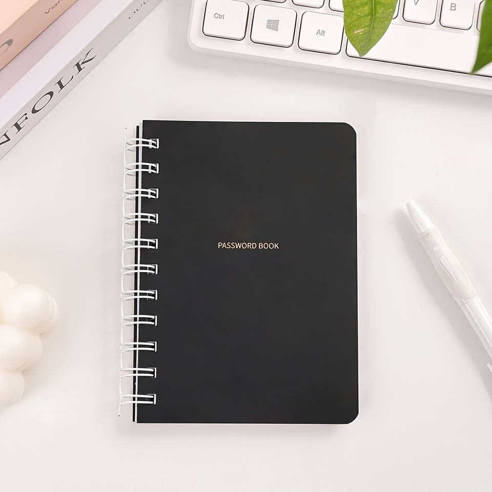 หนังสือชื่อผู้ใช้ที่ปลอดภัยและบันทึกการจัดเก็บรหัสผ่านที่ใช้สำหรับการวางแผนกับหน้าปก PP สีดำ